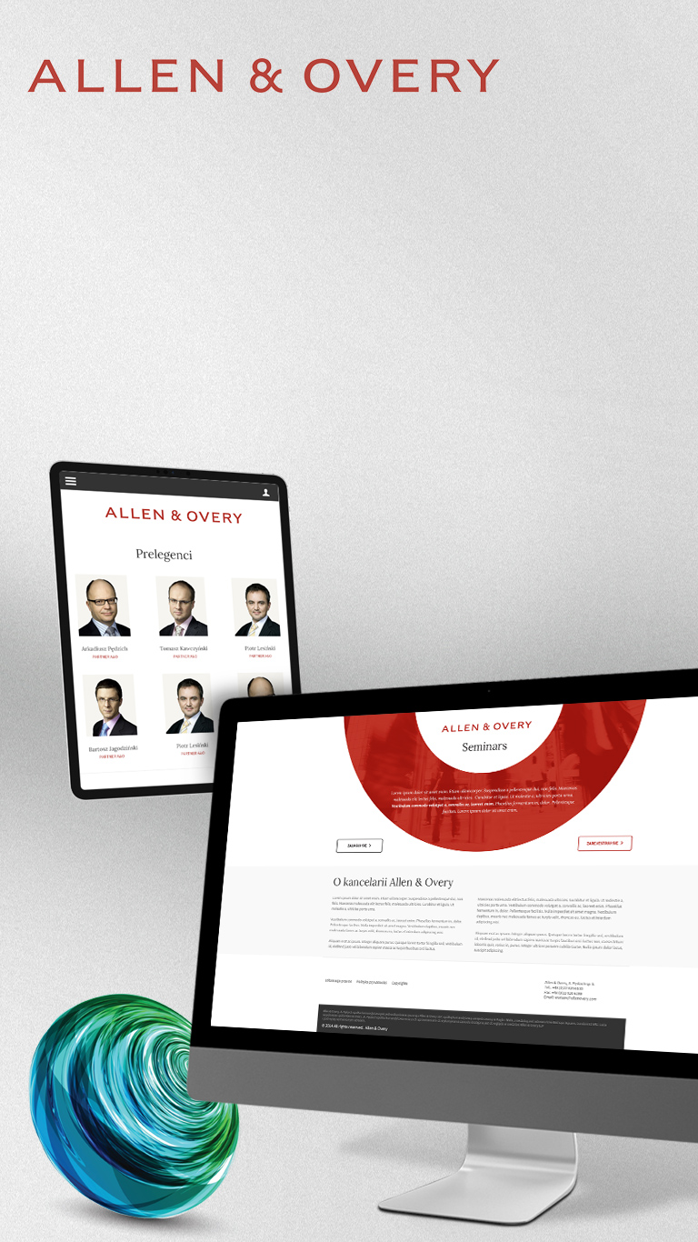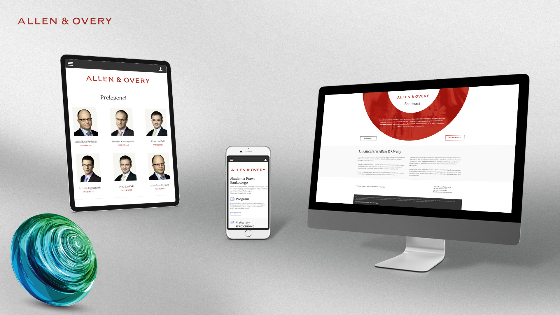 - koncepcja kreatywna, projekt, wdrożenie i utrzymanie strony internetowej Allen&Overy Seminars